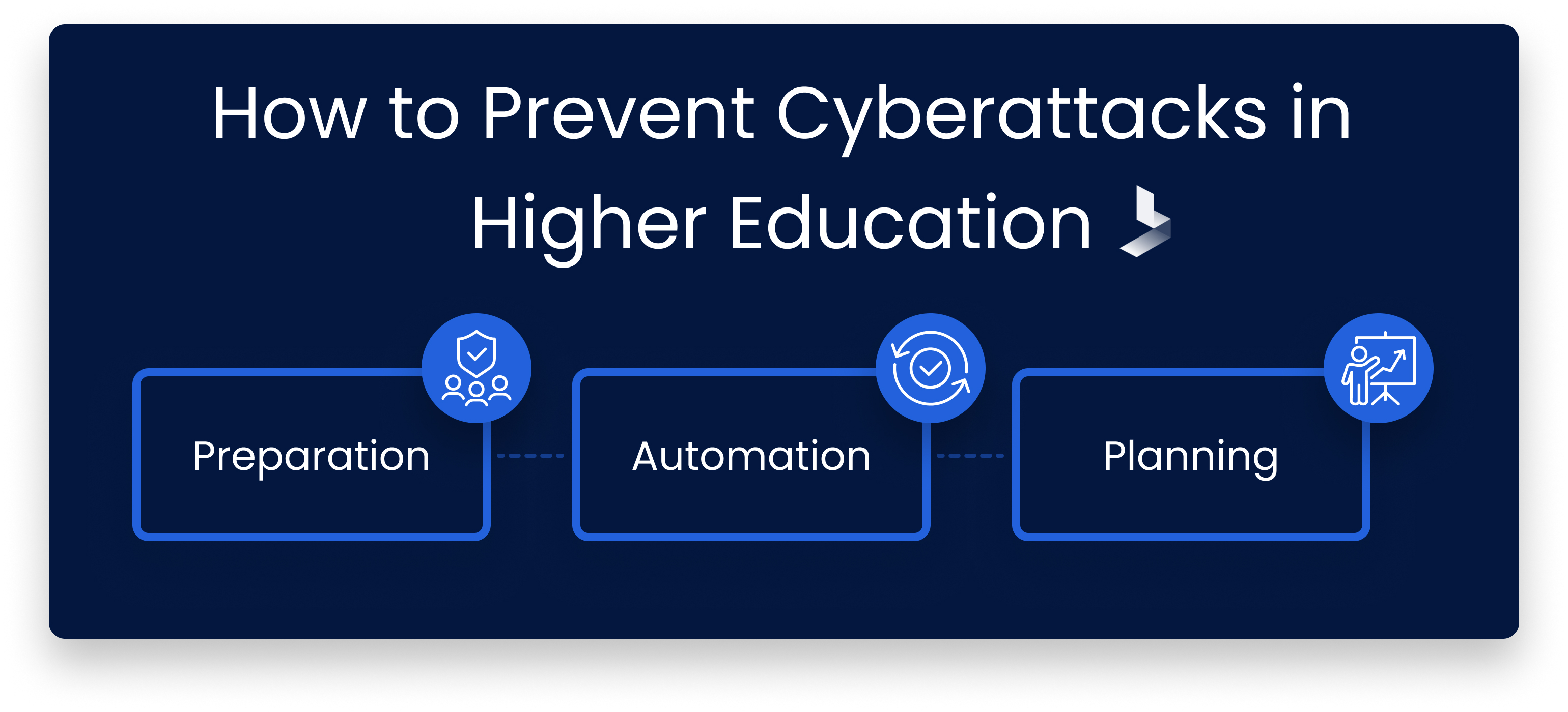 Universities should have a proper plan in place for remediation. Organizations should think through how they are going to remediate attacks? Who’s going to be involved? How are we going to carry out the messaging? What roles and responsibilities will each person or position take? Who else will need to be involved if an issue arises? Thinking through this process will help prevent dwell time after the attack has been initiated. Therefore, you can’t plan to prevent an attack while the attack is happening, so premeditation on how to respond is paramount. This will ensure that each member of the security team will already know who is getting involved and what they should be doing to stop the attack as fast as possible, and minimize any harmful effects.
